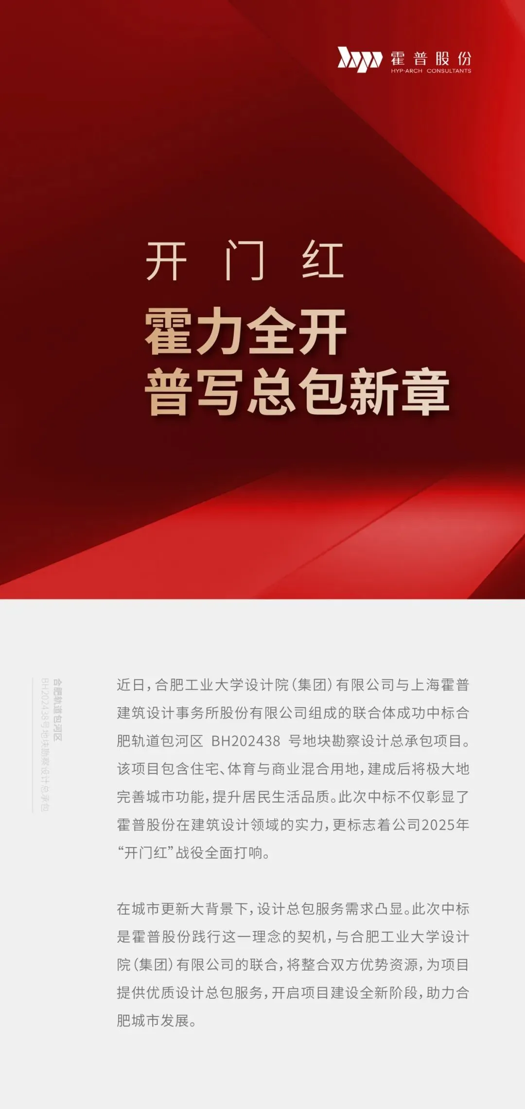 近日,合肥轨道包河区 BH202438 号地块勘察设计总承包项目中标结果揭晓,经过激烈角逐,由合肥工业大学设计院(集团)有限公司与上海霍普建筑设计事务所股份有限公司组成的联合体成功中标。