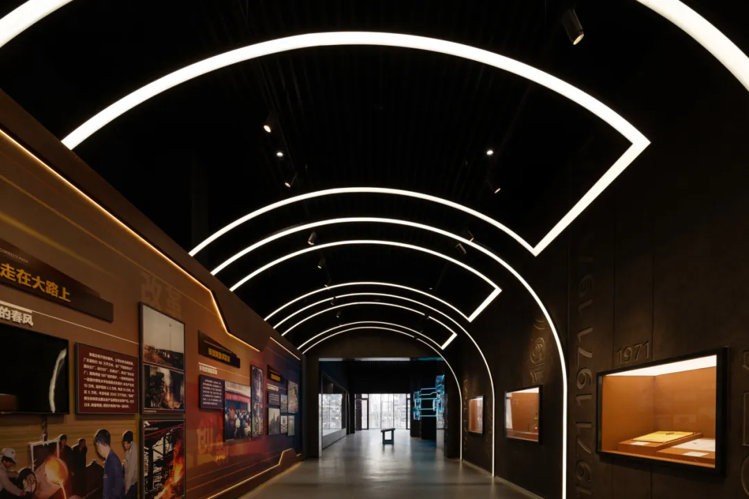 平日模式中,金色作为区域主色调,既象征了历史印记,也象征了活力复兴。在此基础上将重点建筑的局部设置红色与金色搭配,传递工业精神和爱国精神。在节日场景中空中栈道注入了少量蓝色,寓意新旧对话和迈向未来。