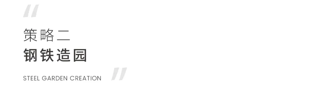 用钢铁的概念打造廊塔阁桥、亭台楼榭,打破了对于“园”的定义和认知,在保护好工业遗址本体基础上,规划一条空中栈道作为工业设备之间联系的纽带,创造出“空中峡谷”和“地面游园”两条体验动线,为激活工业遗址,近距离感受工业文化的魅力。
