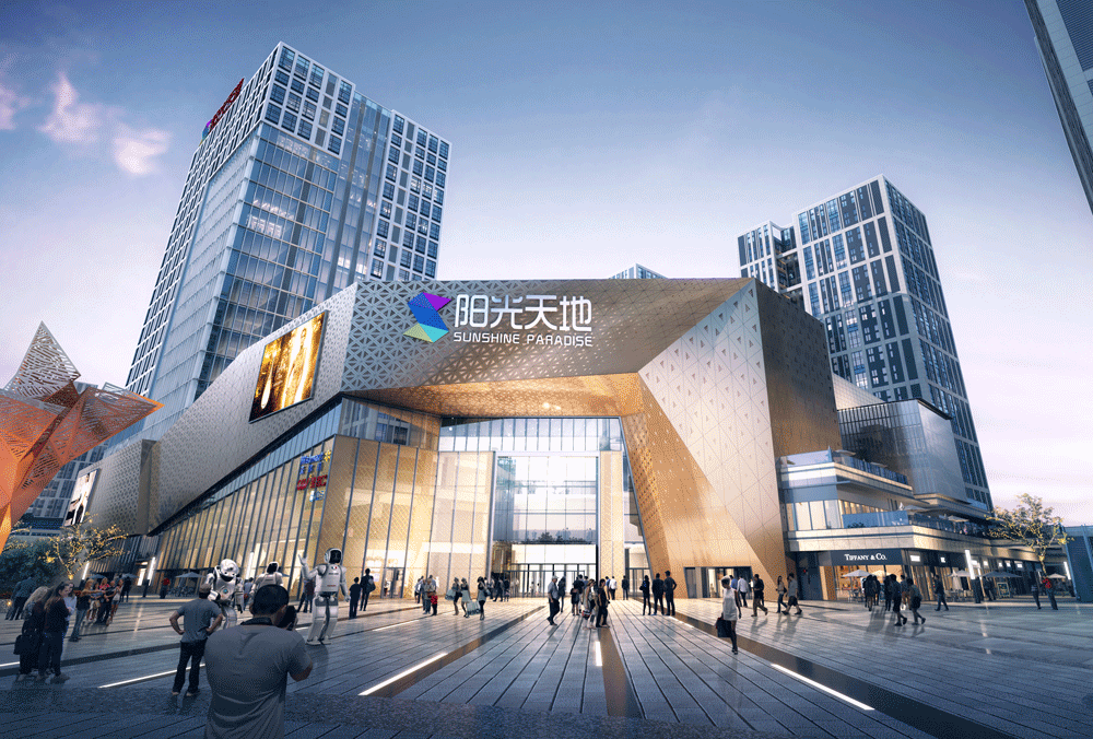 项目由一个约5万平方米MALL与约300米长的体验式商业街共同组成了项目的核心商业部分,商业的上部塔楼由两栋近百米的商务办公楼与四栋SOHO办公组成。