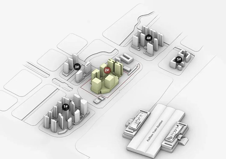商业属性地块与福州南站一路之隔,项目以展示福州东大门形象为核心出发点,以共建南站站前广场的形象为重要组成。落成后,这里将成为整个南站出行、商务、活动的重要组成版块。