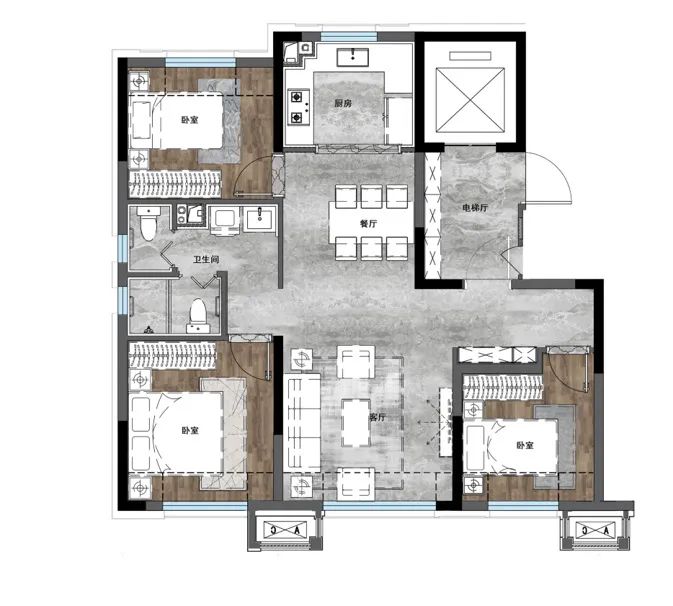 其实101㎡也可以做到三房“两卫”、独梯入户!