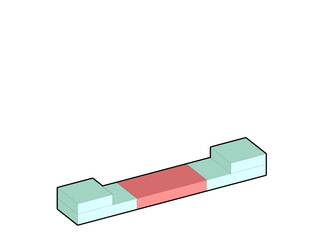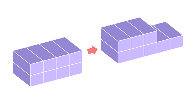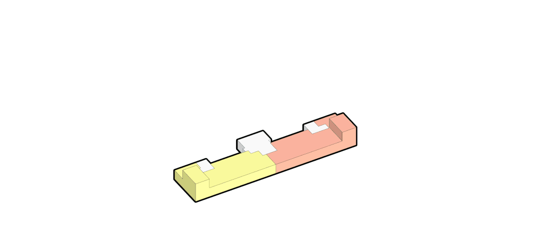 借此我们在传统4+4面宽复式的基础上重构空间,研发了5+3面宽的新型复式。