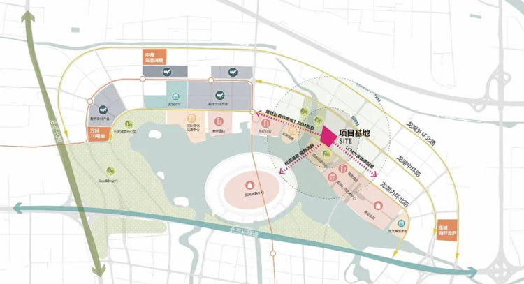 项目位于郑州市龙湖内环北路北、龙沄路西,用地面积48487.5㎡,容积率<1.70,建筑密度<28%。地块西临河,南临湖,是北龙湖稀有的滨水住宅地块。