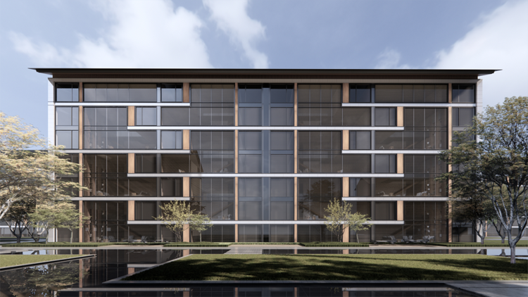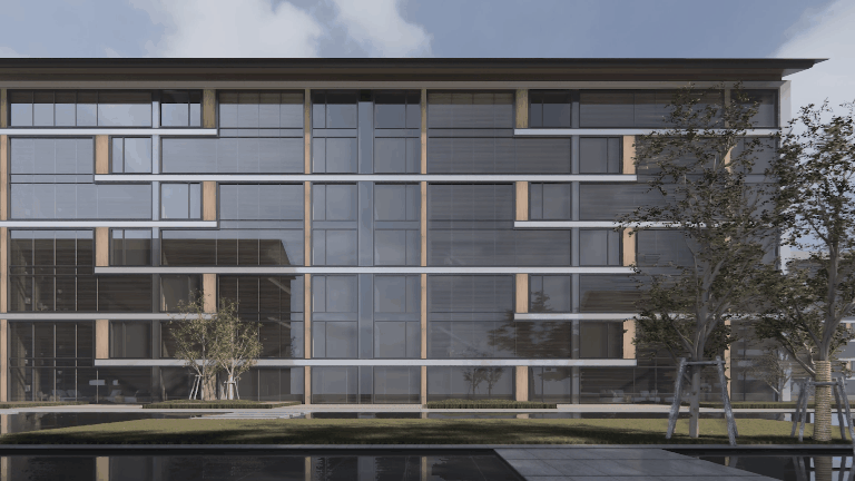 造型上大胆创新,取传统文化“高山流水,曲水流觞”意境,受山间变幻起伏的云雾启发,将其运用到立面设计之中,用现代化的手法来描摹东方文化雅韵。