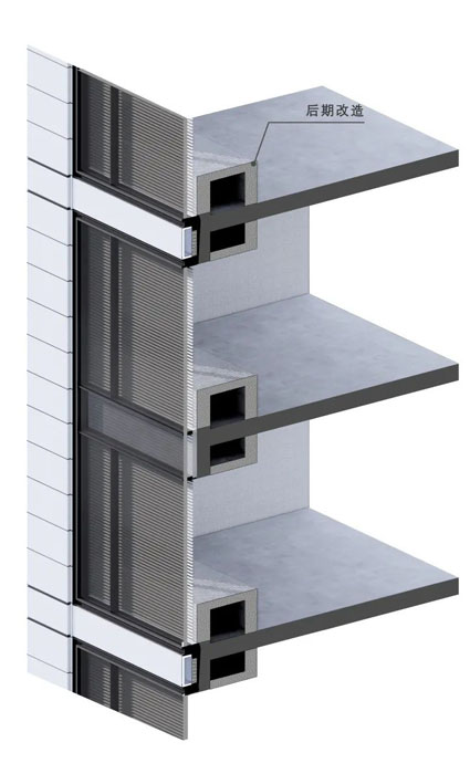 我们与门窗和幕墙厂家共同研发,设计了一种新型窗系统,能够将门窗前推与石材做平。