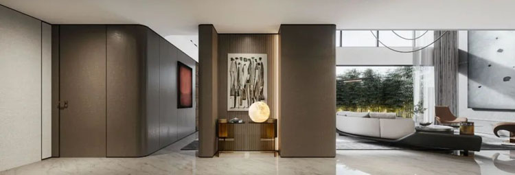 设计师以前瞻性的视野描绘未来生活场景,挑战传统入户玄关格局。主人一到家就可以推开衣帽间门换下沉重的外套和行李,还原传统贵族仪式感。