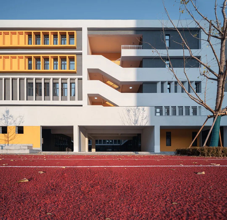 打造一个内向的充满活力的多维度的空间体系,串联不同的公共活动空间和完整连续的动态交通。创造出一个平行于高强度教学功能下的健康运动空间⸺ “第二跑道”,将扁平化的空间立体化编织,增进学生与建筑之间的互动体验和感官交流。