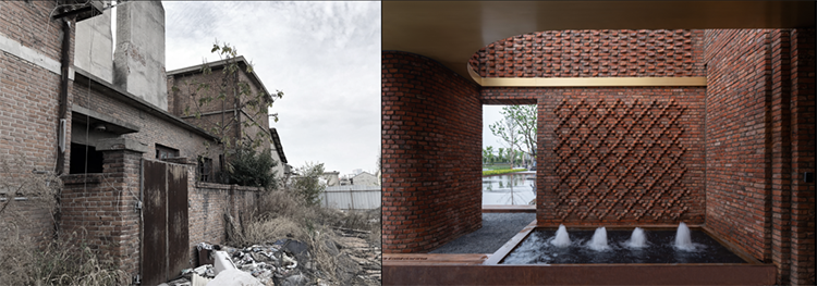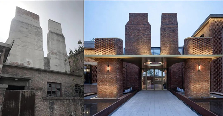 将文脉植入并加以文化转译,量体裁衣式针对每栋楼进行更新设计,从中国传统文化中攫取文化营养,将工业锈带转变为扬州细俏生活秀场,打造保有工业记忆的精致开放漫游街区。对不同年代的5栋楼进行了量体裁衣式更新,点对点空间及形式营造,提升建筑细俏质感。
