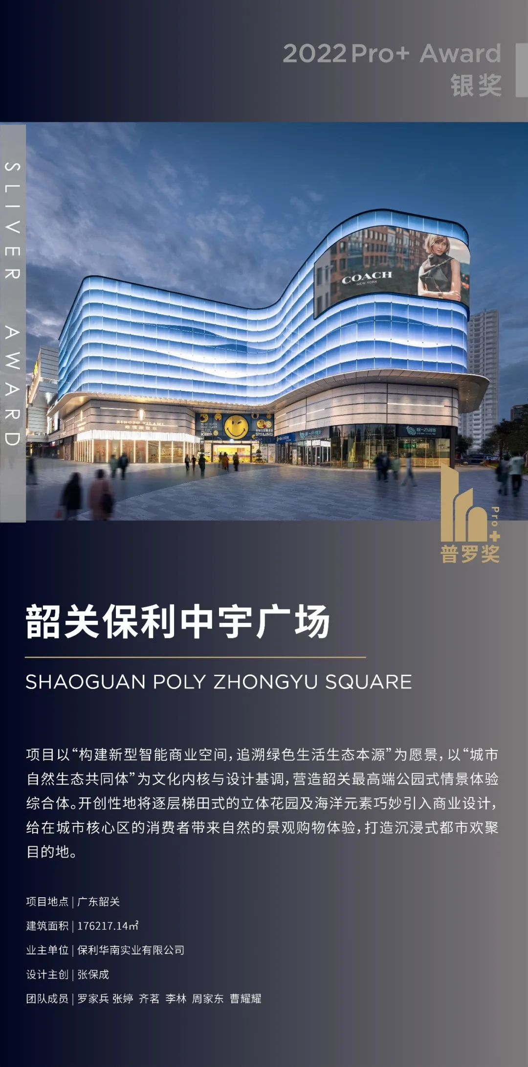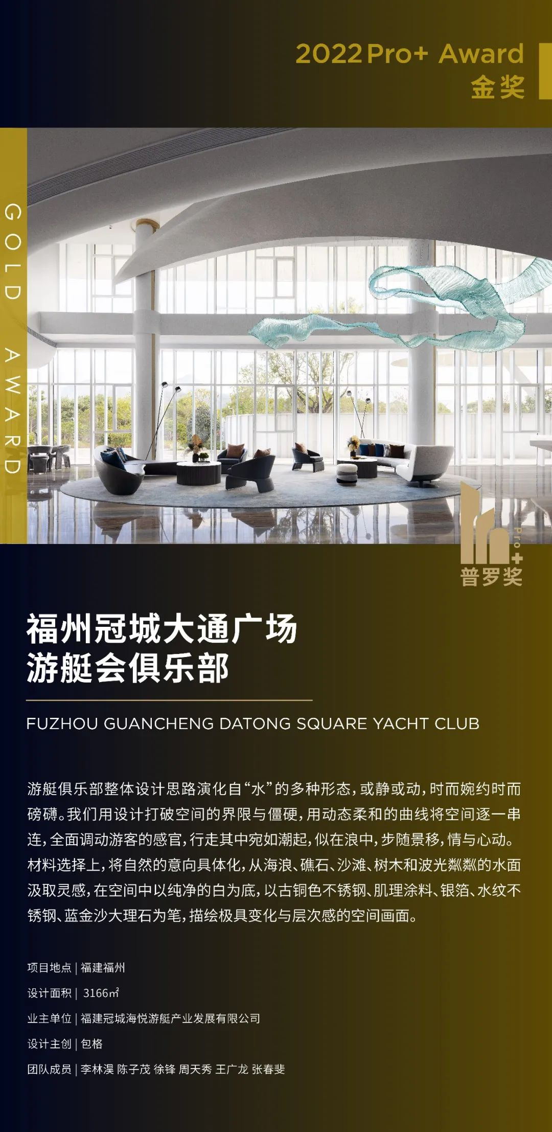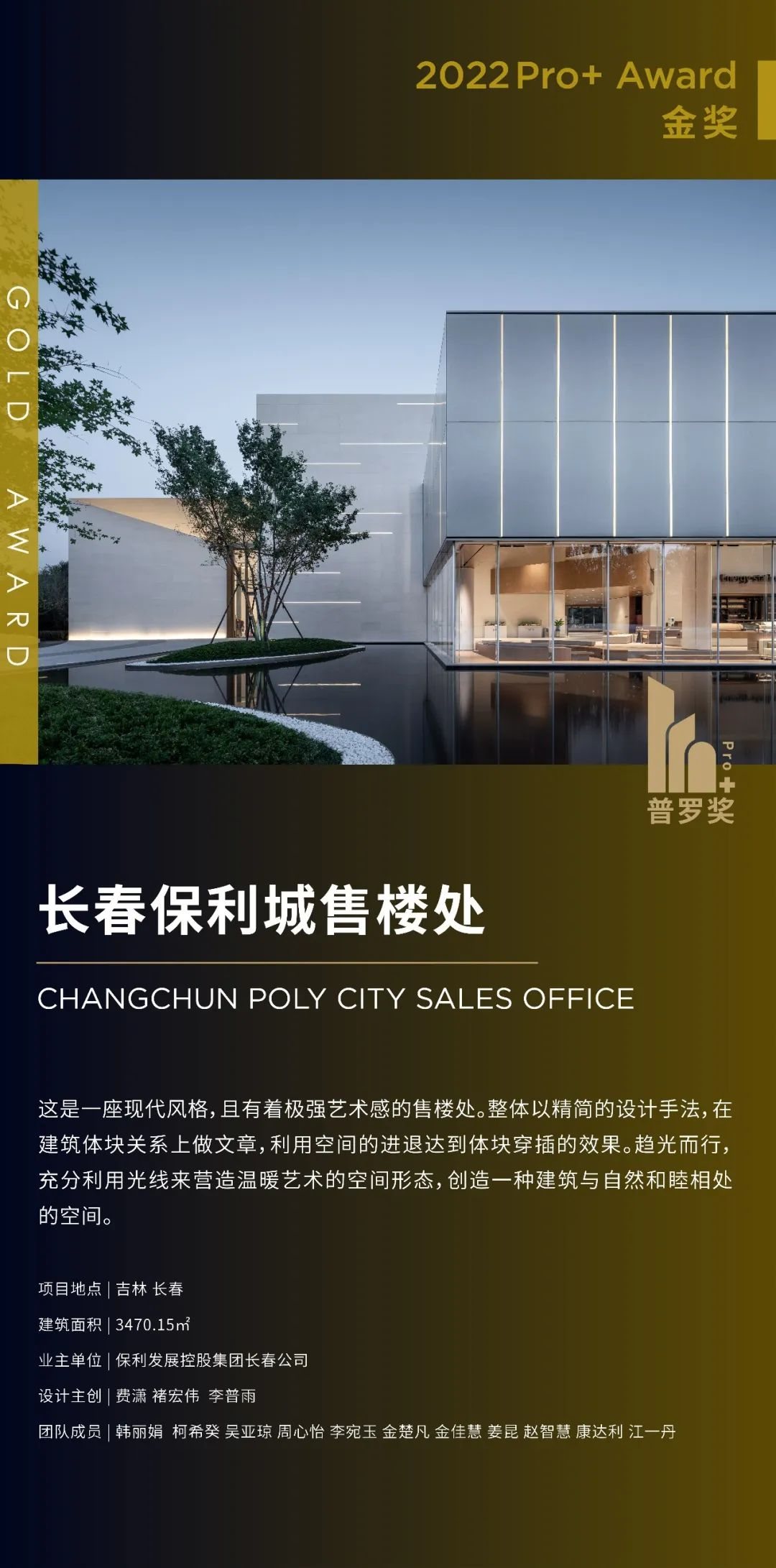 祝贺霍普股份三项设计作品在2022PRO+AWARD普罗奖评比中脱颖而出,荣获多类别金银奖;其中长春保利城售楼处获示范区金奖、福州冠城大通广场游艇会俱乐部获室内金奖、韶关保利中宇广场获商办建筑类银奖。
