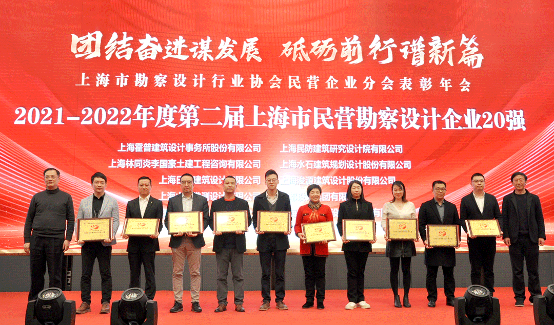 霍普股份受邀参加此次盛会,并荣获2021-2022年度上海市民营勘察设计“企业20强、工匠20杰、项目20佳”多个荣誉称号,董事长龚俊先生当选民营企业分会第三届理事会副会长。