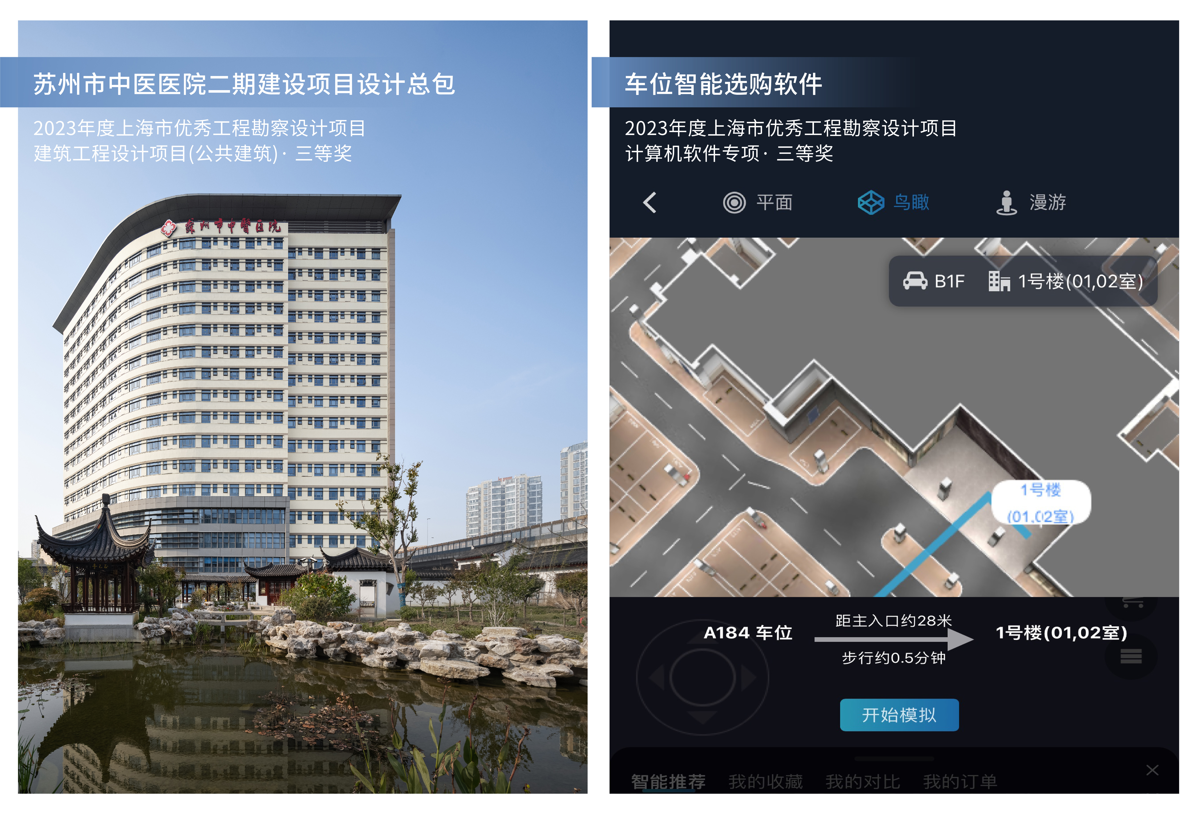 霍普股份获得2项殊荣,医疗项目「苏州市中医医院二期建设项目设计总包」获公共建筑类三等奖,「普仕昇车位智能选购软件」获计算机软件专项三等奖。