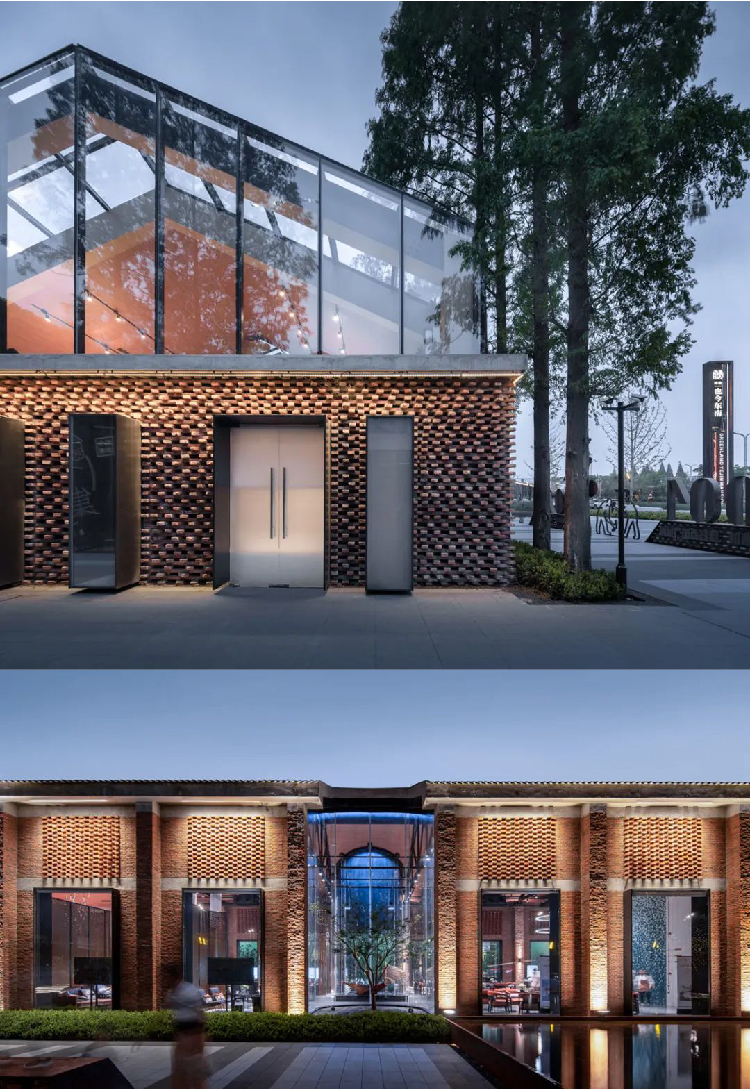从城市角度分析,发挥多区块联动作用,坚持1+1>2动态联动发展原则,将旧改与城市的关系结合,打造开放漫游街区、文化集市。改造后将成为区域网红设计打卡点,发挥经济带动作用,促进扬州整体的城市发展。整个设计秉承原址保留保存、艺术化新旧对比融合与工遗历史联想两大要素,充分挖掘原有建筑、景观元素的在地属性。以保留老砖红砖为主要材料,将老青砖以粒子参数化的设计解构重组,通过建筑语言转译,延续历史文化。