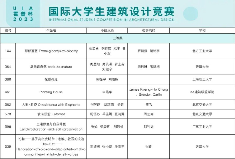 获奖名单首发!UIA-霍普杯2023国际大学生建筑设计竞赛结果公布