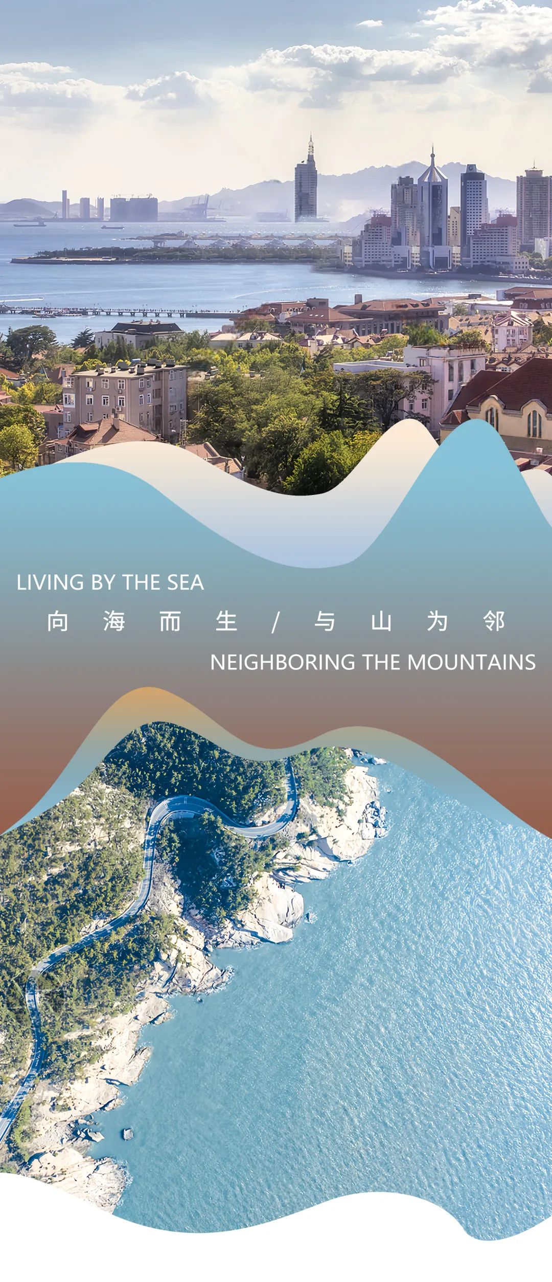 建筑设计灵感来自于青岛“向海而生,与山为邻”的城市画面,以“理想生活”与“追本溯源”的初衷统领整体的创作。