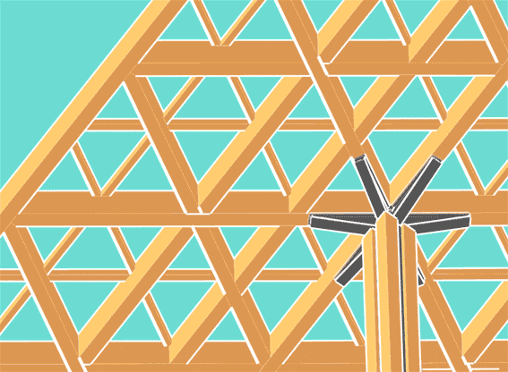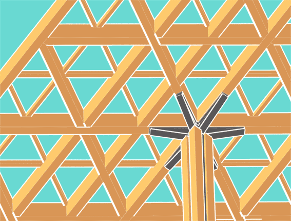 三角形结构的屋面不仅从美观度上看视觉层次更加丰富,而且符合三角形最稳定的受力结构,结合爪形结构柱头的承托,优化了木构建筑的整体受力。