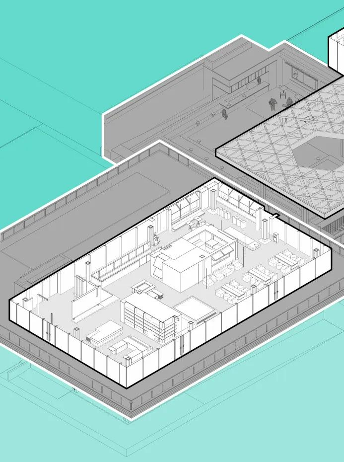 建筑布置于公园地块与住宅地块之间,背靠基坑斜坡而建,既连接了两个地块的流线,又利用地形围合出了公园广场空间。