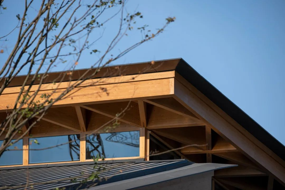 屋顶构架以三角形为基本母题组合,重构传统坡屋顶,通过用现代的手法重构传统坡屋顶与维护墙体,将中国传统的建筑文化底蕴注入场所之中。