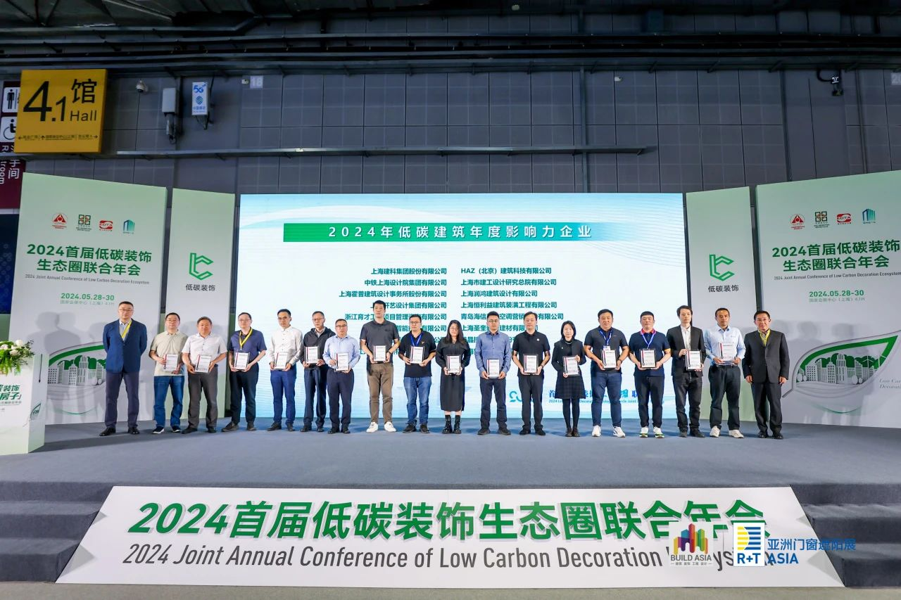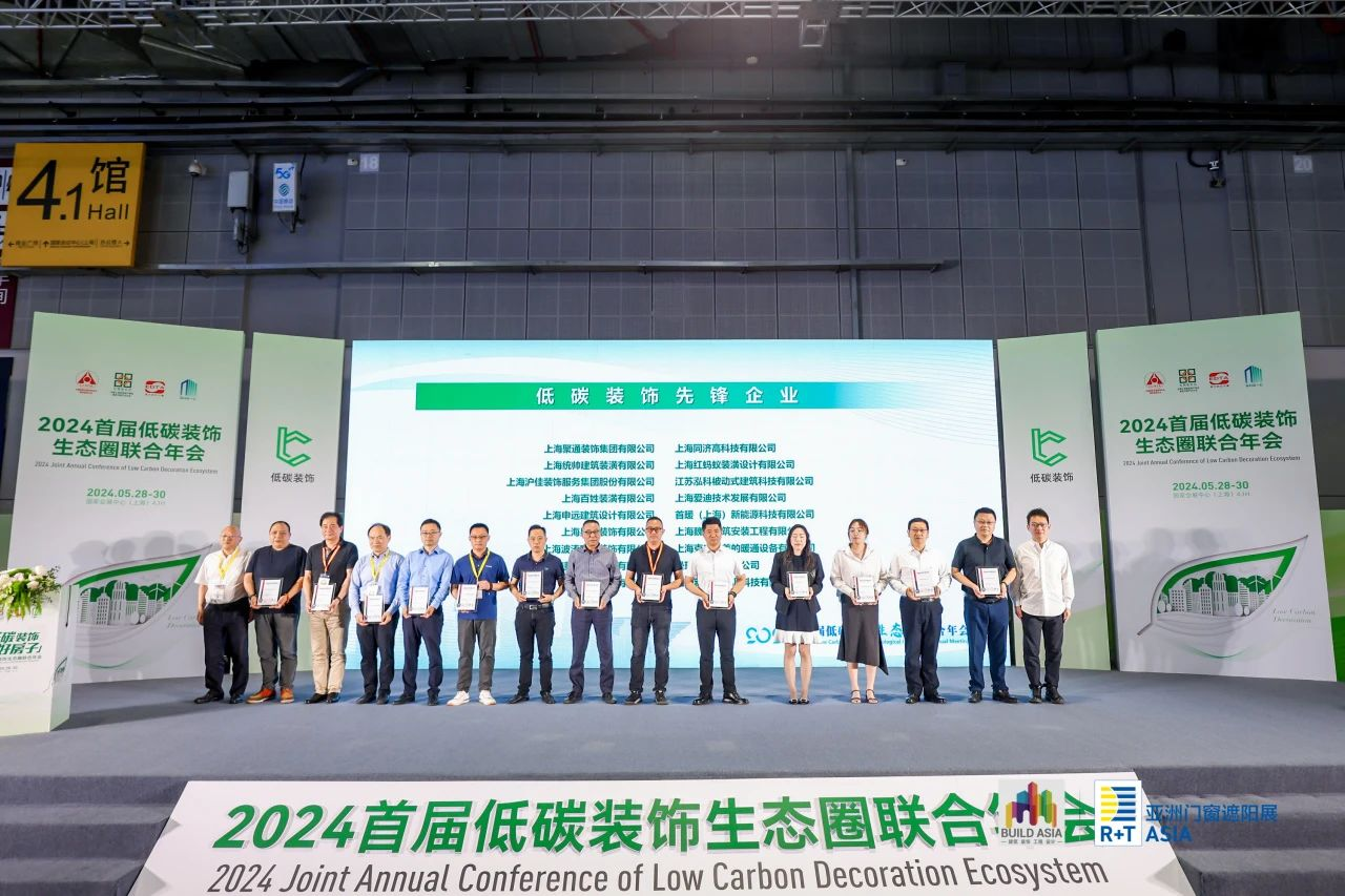 2024首届低碳装饰生态圈联合年会由中国建筑金属结构协会建筑遮阳分会、全联房地产商会建筑节能产业分会、上海市勘察设计行业协会室内设计分会及新型建设材料推广中心四部门联合主办,中国建筑金属结构协会秘书长宋为民,全联房地产商会秘书长赵正挺,上海市勘察设计行业协会党支部书记、秘书长忻国樑以及会员代表约300人现场参会。