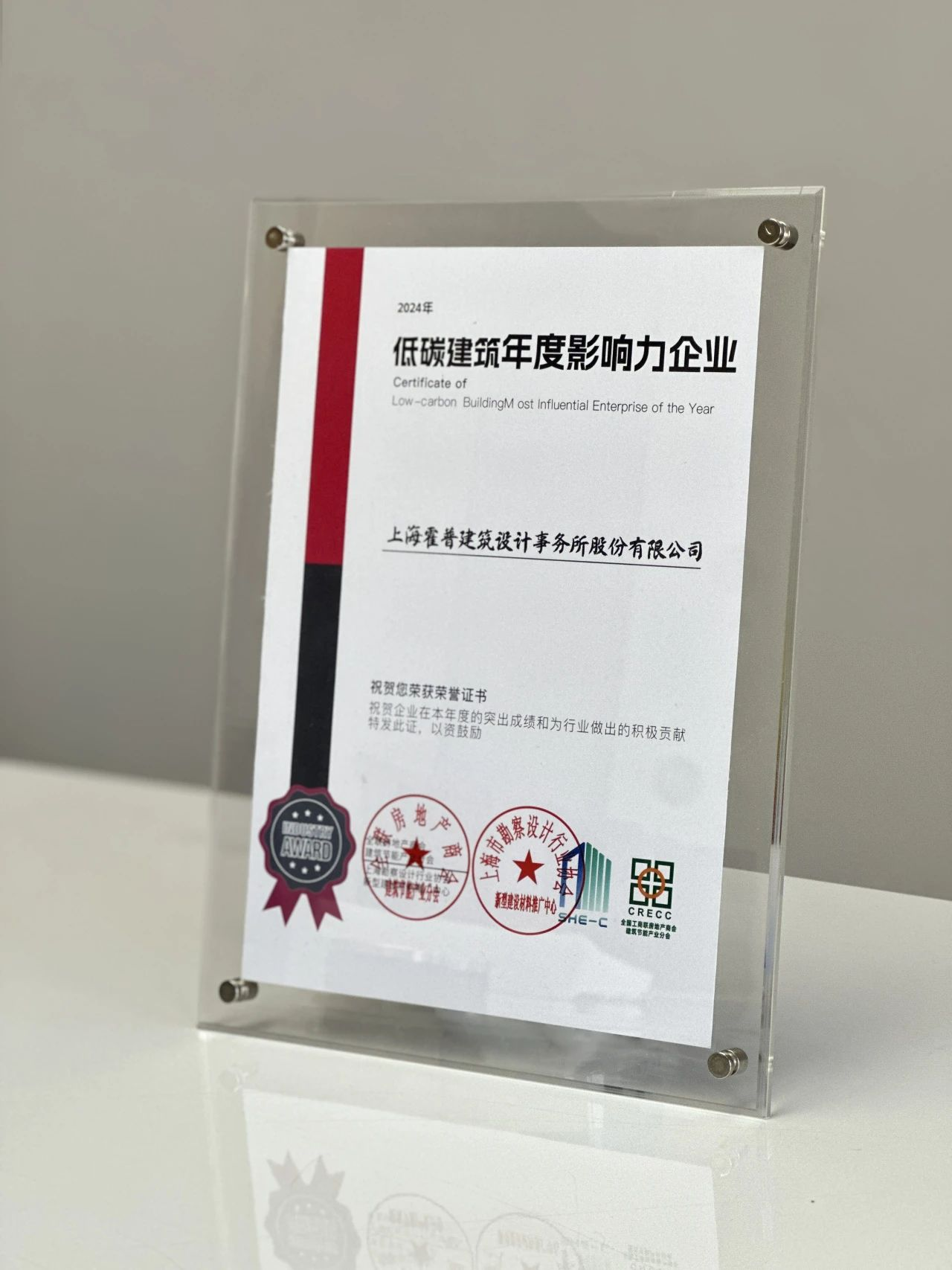 喜讯 | 霍普股份荣获「2024年低碳建筑年度影响力企业」