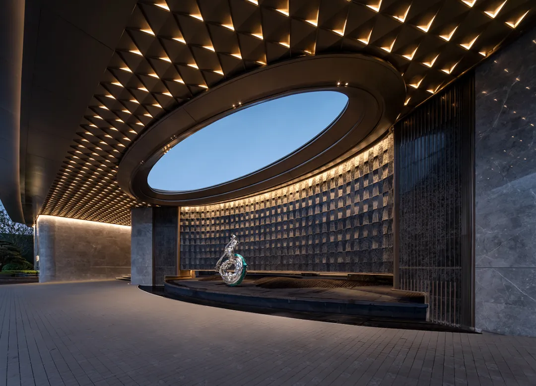 招商·武昌序示范区融合了荆楚文化与现代设计,入口处以80米宽的“长卷”大门展现武汉的历史。设计中融入象征繁荣与希望的“燕”元素,贯穿整个社区,赋予项目独特文化内涵。创新引入中央车站设计,优化归家体验,设置独立车行落客区和无风雨连廊,提升便利性与舒适性。地下车库采用双层设计,与住宅大堂相连,利用高差形成挑空大堂。类四代住宅以155-186㎡大平层重新定义空间,立面采用弧形玻璃线条,形成特殊的光影质感,展现豪宅的新标准。