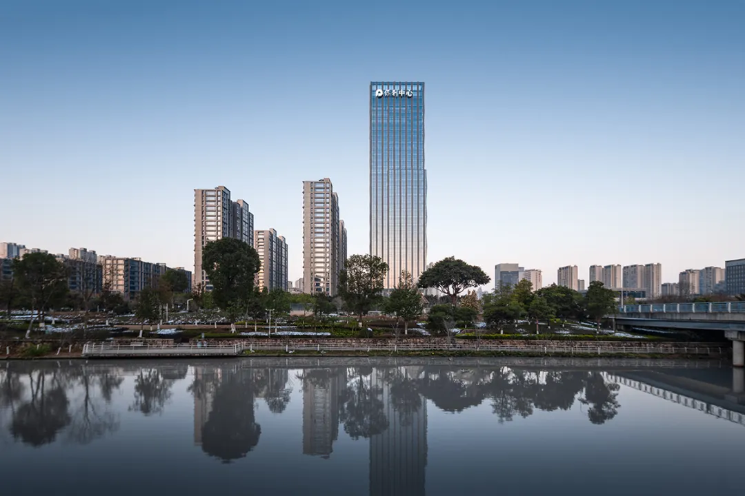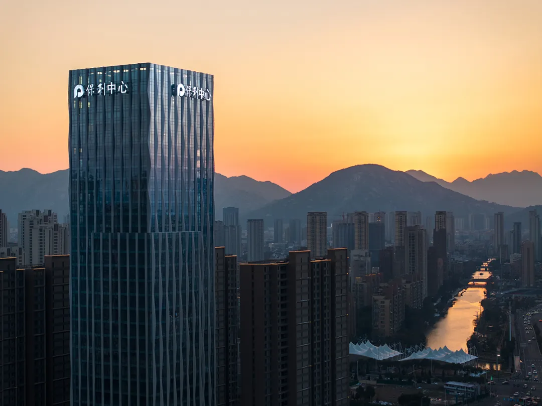 温州保利中心位于浙江省温州市,总建筑面积4.1万平方米,近150米高,办公面积3.7万平方米,商业面积4000平方米,致力于打造区域总部经济集聚地。项目位于城市中央绿轴左侧,东侧面向城市干道,建筑采用体块切割和空中绿化,最大化展示东侧城市绿轴景观。手法上以折线形穿孔板形成一种如龙一样升腾向上的动势,寓意城市经济的腾飞。外立面使用双银全Low-E夹胶玻璃,搭配竖向穿孔遮阳罩和可开启式双层幕墙,实现良好通风,以低于传统写字楼的能耗提供绿色环保的办公环境。