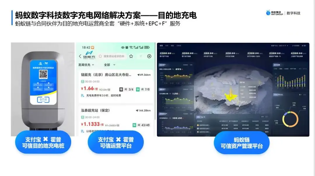 霍普智联项目总监封钦望进一步透露,霍普与蚂蚁数科、支付宝联合推出的 7kw 交流充电桩,为运营商量身定制 “可信硬件 + 可信平台 + EPC + F” 一站式解决方案,助力其快速投身新能源基建业务。设备植入蚂蚁可信模组,借助蚂蚁可信链实现充电桩资产实体资产通证化,可成功对接全球金融市场,为运营商资产变现开辟新路径。